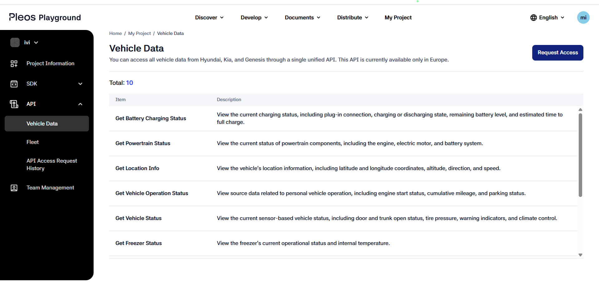 In the left sidebar of the project screen, go to API > Vehicle Data.
